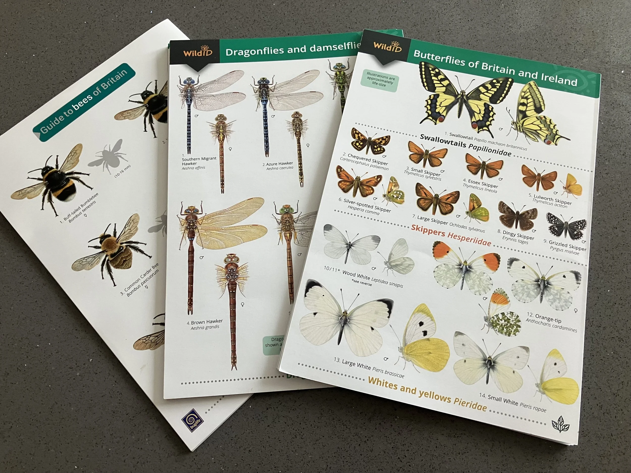 Attracting wildlife and identifying them is going to take a while. We’re helped in the identification, thanks to an excellent series of laminated guides produced by the Field Studies Council. Thus far, we have their guides on bees, dragonflies and damselflies, and butterflies.