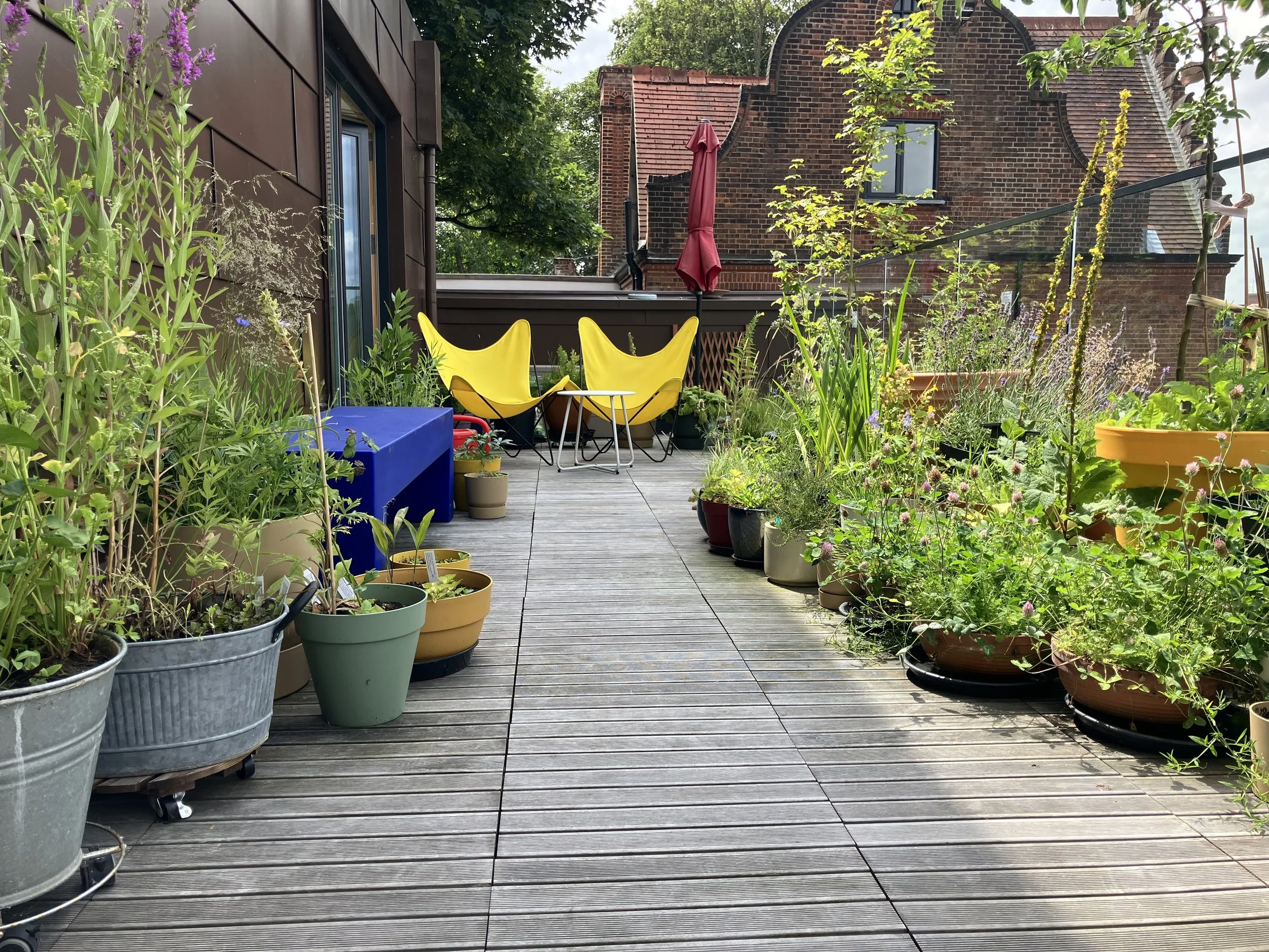 I’ve taken the ‘wrap around’ idea one step further, and moved the two bogs gardens to the back of the terrace. The purple loosestrife looks especially beautiful.