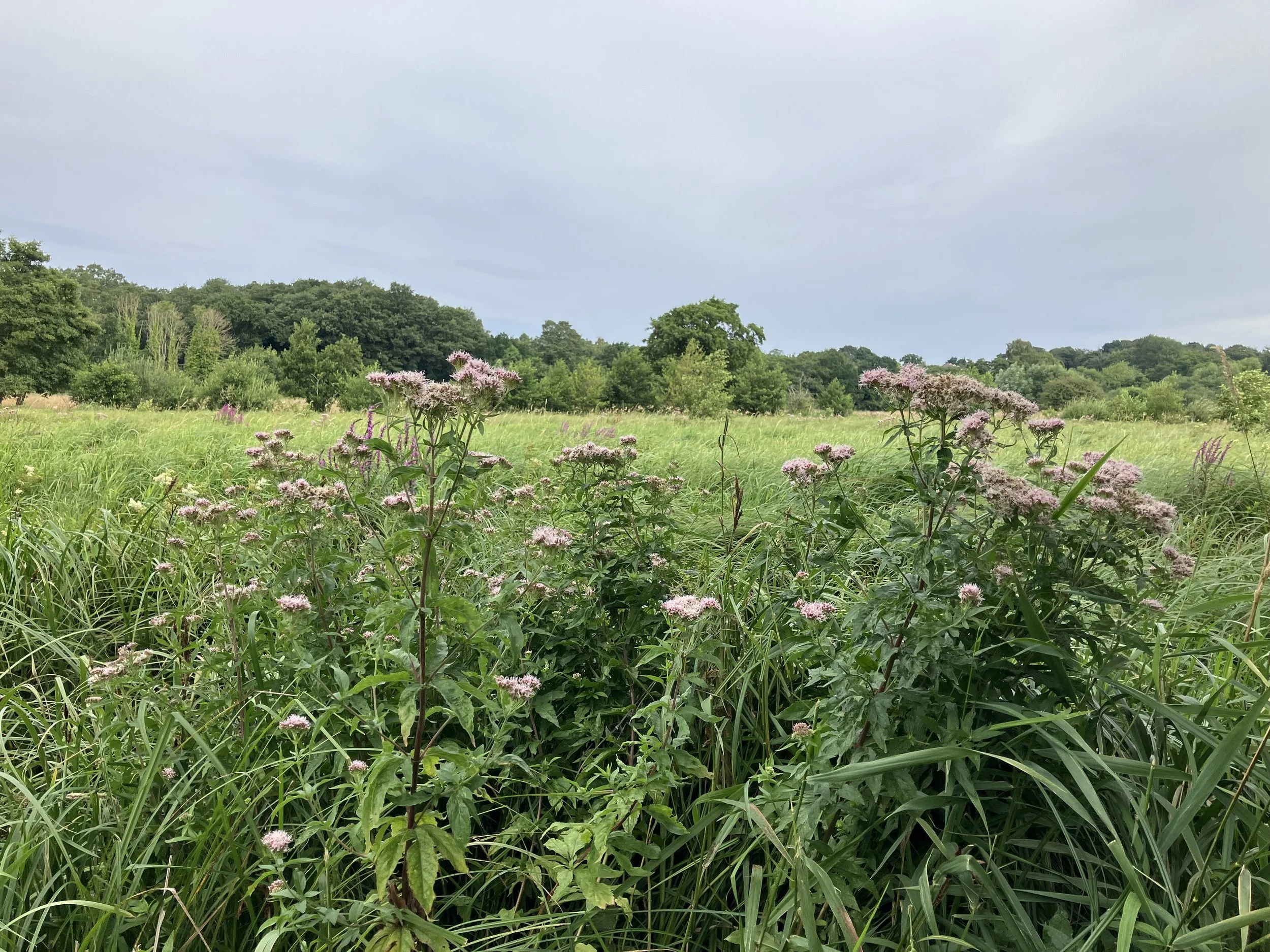 Closer to Norwich is Marston Marsh, a 26-acre floodplain grazing marsh along the River Yare. Here we saw hemp agrimony (Eupatorium cannabinum), meadowsweet (Filipendula ulmaria), purple-loosestrife (Lythrum salicaria), water mint (Mentha aquatica), and common fleabane (Pulicaria dysenterica).