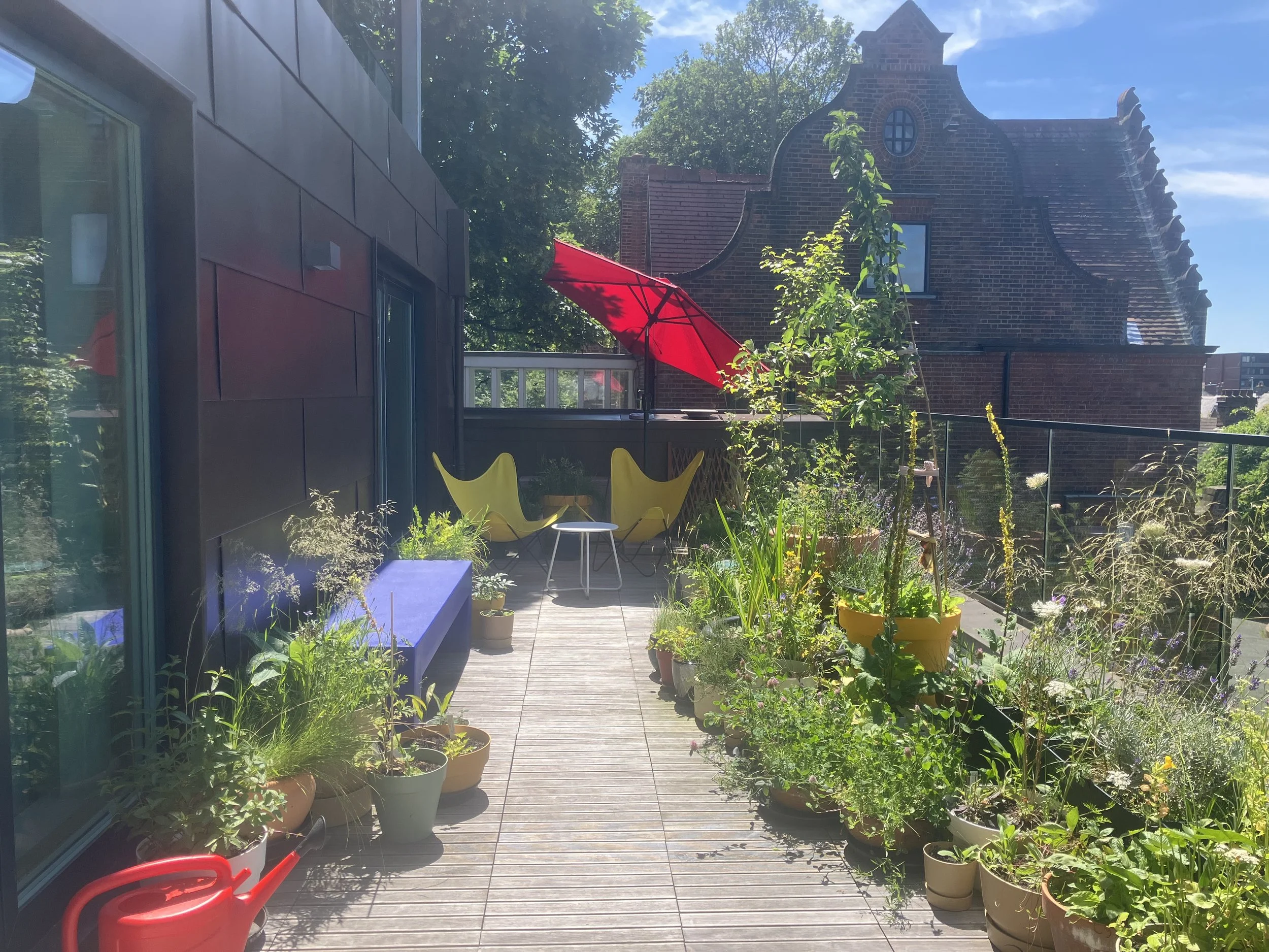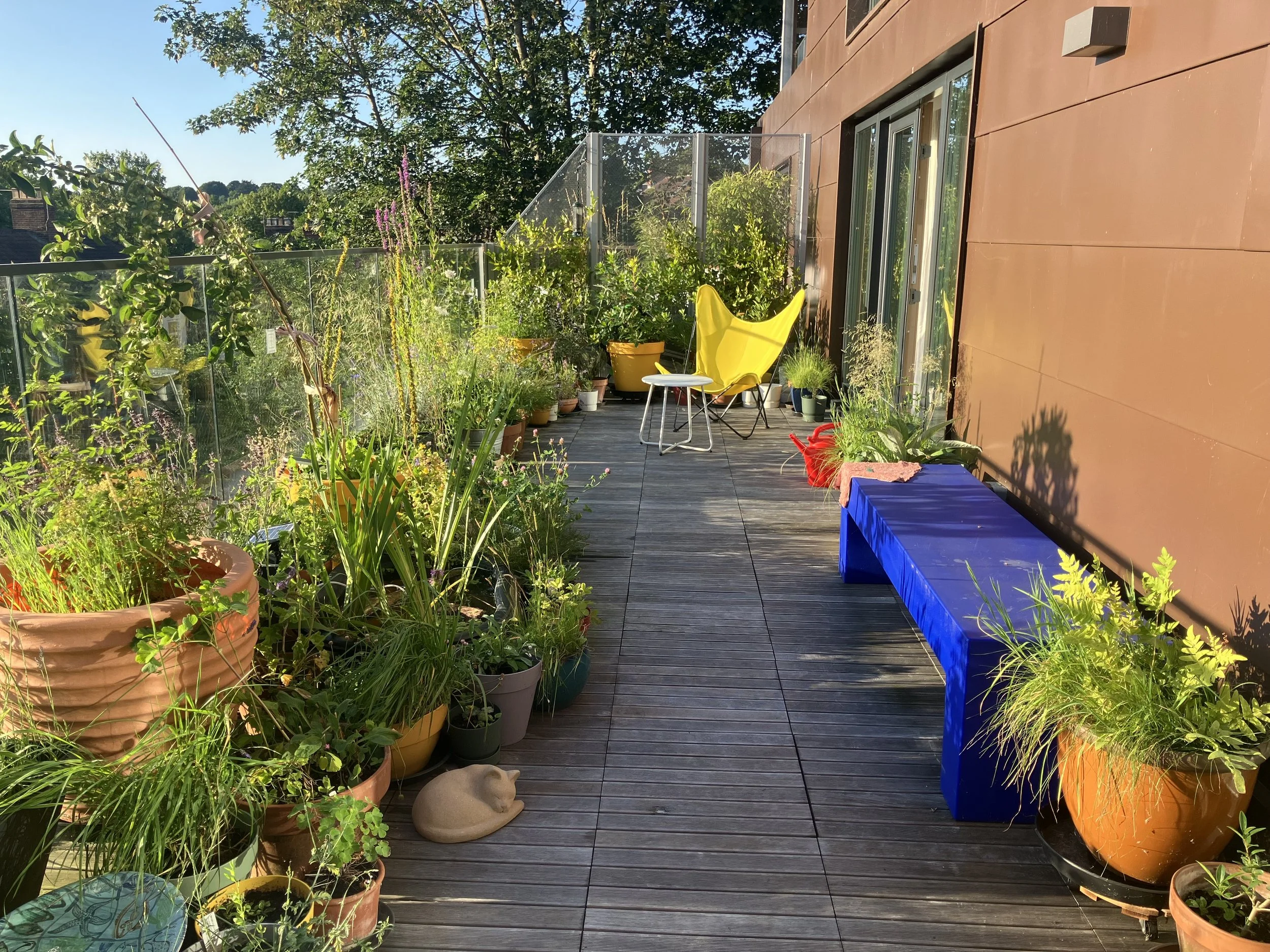 I’ve re-arranged the garden so that the plants wrap around the back of the balcony. It feels more enclosed.